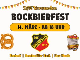 Am Samstag, den 14.03.2026 findet ab 18 Uhr im Sportheim der DJK ein Bockbierfest statt. Neben dem Superator-Bock der Brauerei Bruckmüller kommen auch weitere Getränke zum Ausschank. Passend zum Bockbier werden auch kleine Gerichte angeboten. [...]