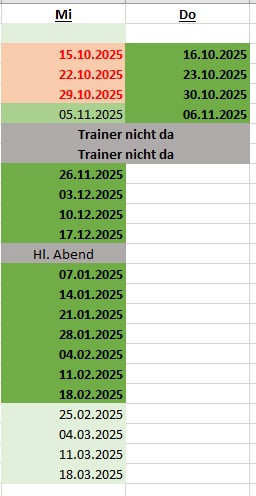 Der Kurs findet immer mittwochs/donnerstags von 18.30 bis 19.30 Uhr statt.